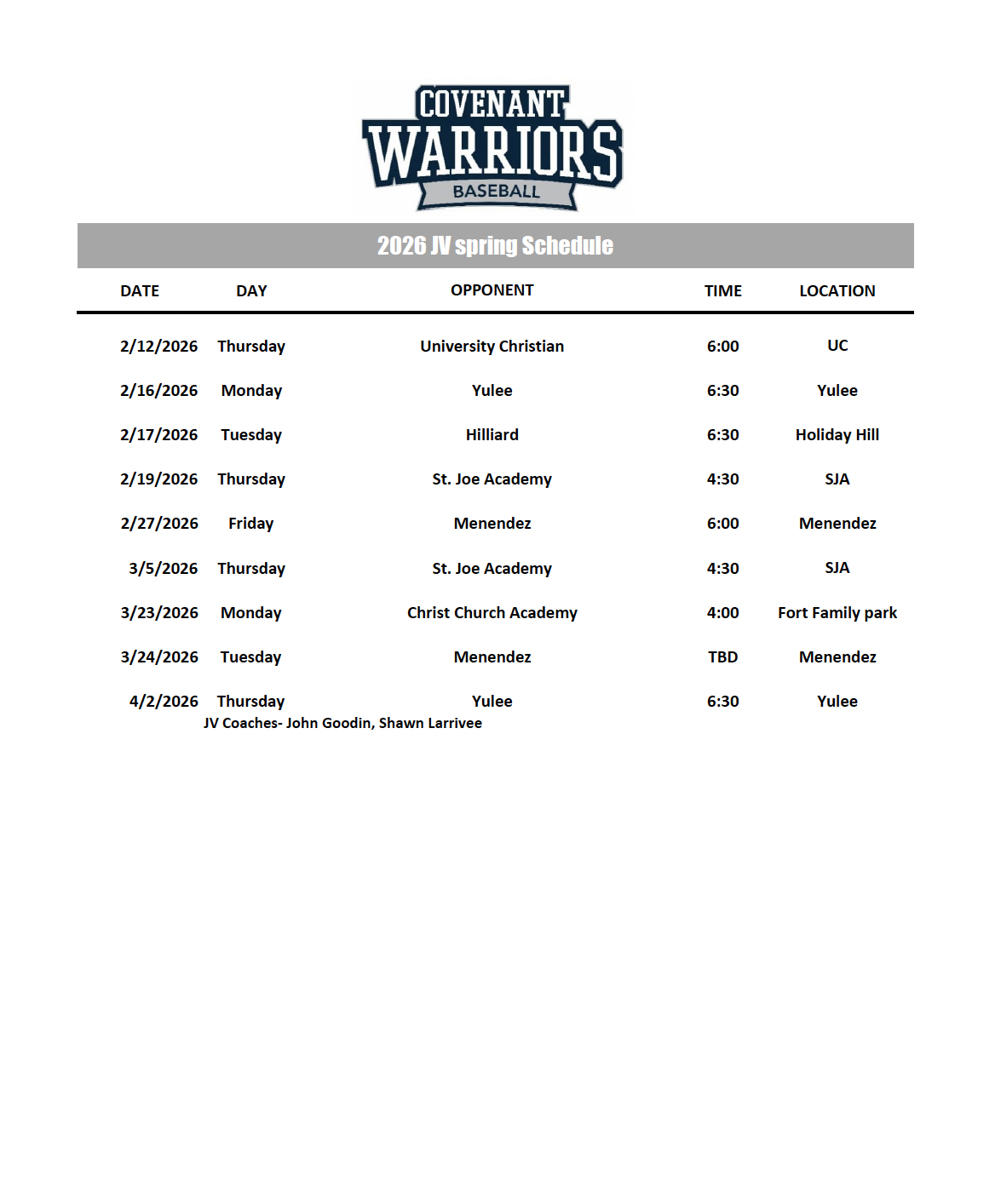 Download and view the 2026 Baseball Schedules by clicking the image.