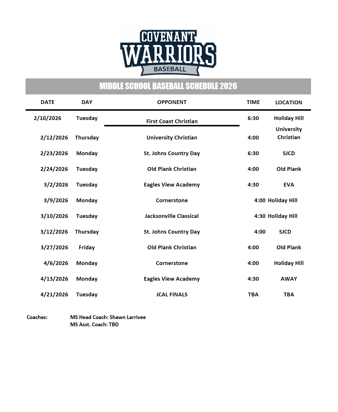 Download and view the 2026 Middle School Baseball Schedule by clicking the image.